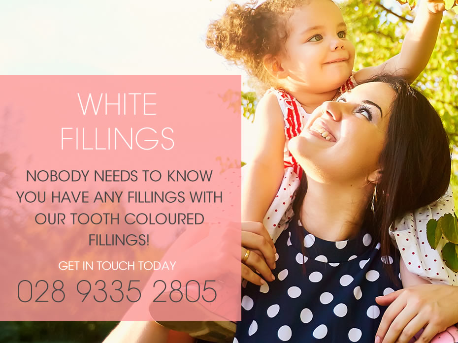 The composite material that makes up the white fillings can be used to restore teeth to their original shape and colour. This more versatile material can also be used for cosmetic purposes such as restoring chipped or uneven teeth - including the front ones- and more and more of our patients are replacing their old, unsightly silver fillings with the more useful and attractive composite fillings.